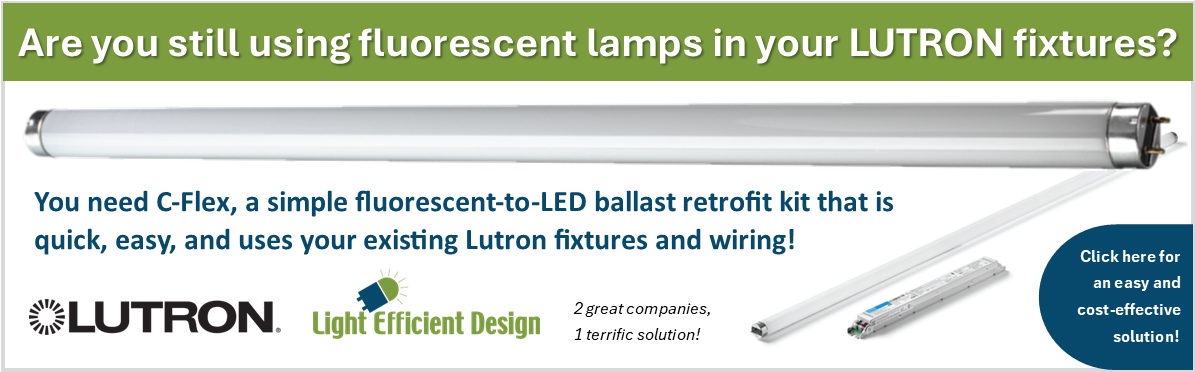 Still using fluorescent fixtures? We can help with simple fluorescent-to-LED retrofits. Click for info.