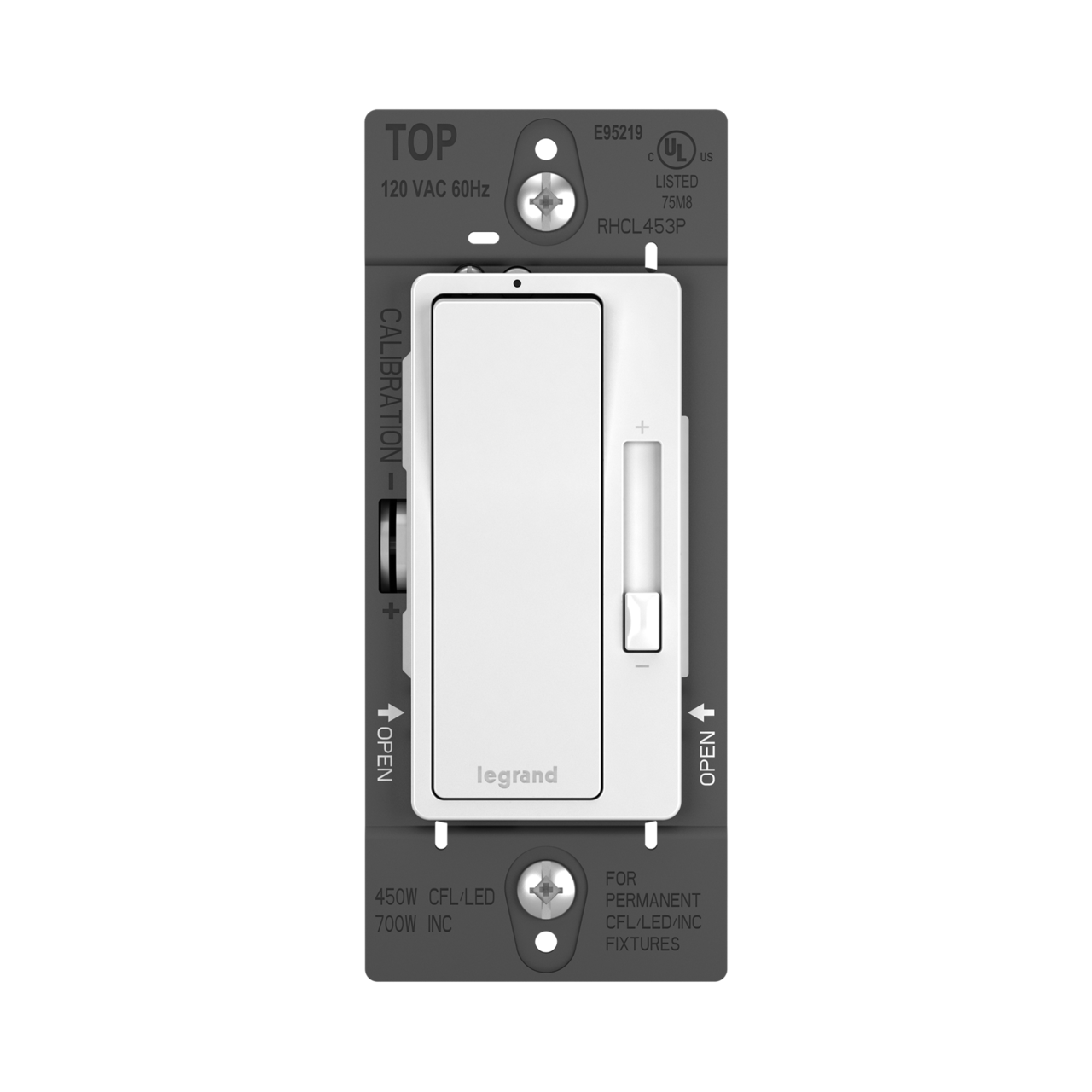 - Brand: Pass & Seymour LegrandApplication: ResidentialConnection: Screw TerminalsCountry of Origin: CNEnclosure: ThermoplasticEnvironmental Conditions: Humidity: Less than 95% non condensingFrequency Rating: 120VAC 60 HzLoad: Incandescent, CFL, LEDMaterial: ThermoplasticMounting: Box MountMounting Type: Wall BoxNumber of Poles: Single Pole 3-WayOperating Temperature: Ambient Temperature: 0° and 40°CStandard: CULUS, UL, CSA Listed, cULus, UL ListedSub Brand: radiantSwitch Type: Paddle, SliderType: DimmerVoltage Rating: 120Wattage: 700 W