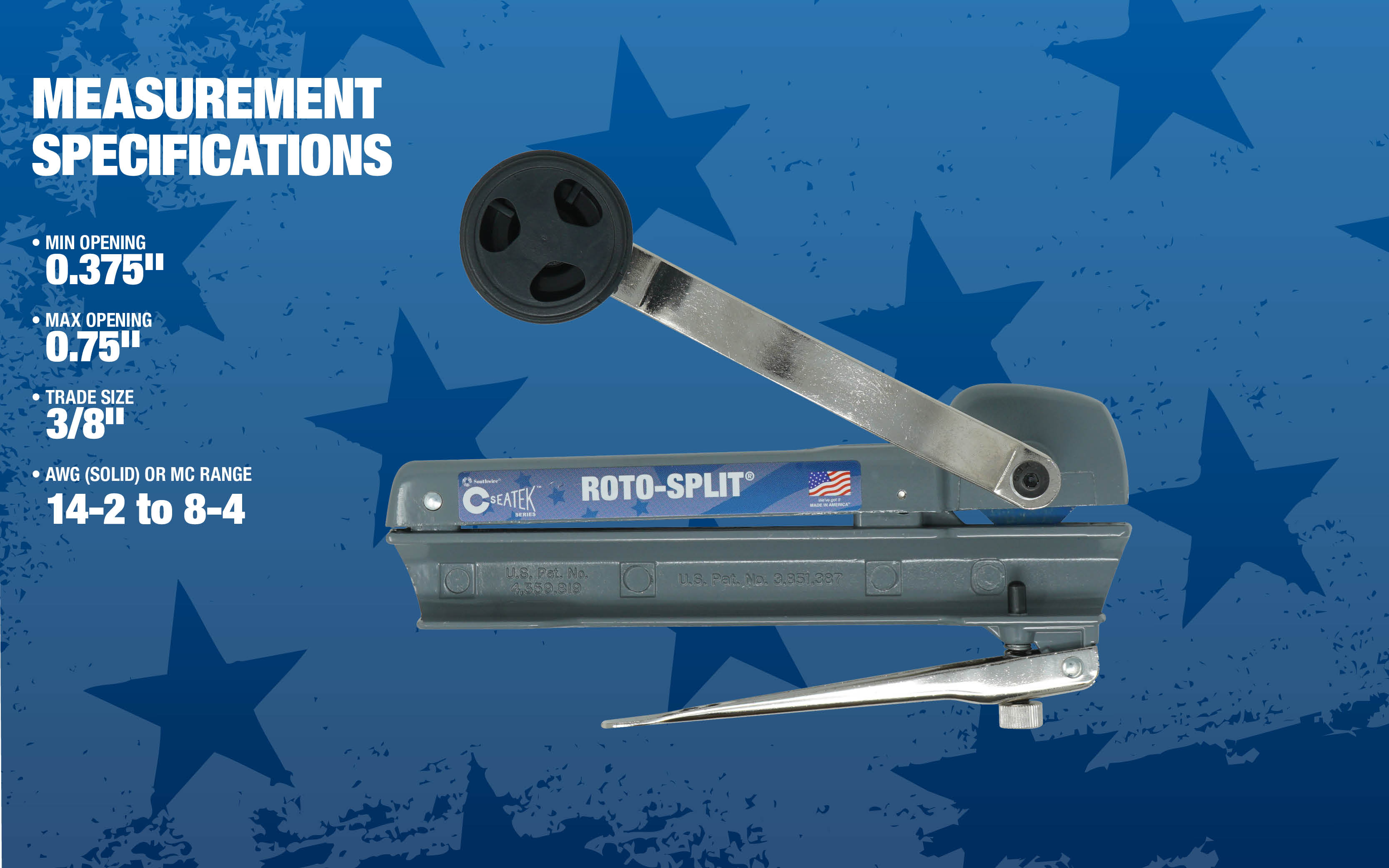 - Seatek® Roto-Split® Cable Cutter, 14 to 8 AWG Cable/Wire, Rotary Handle, Epoxy Enamel