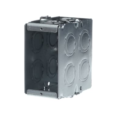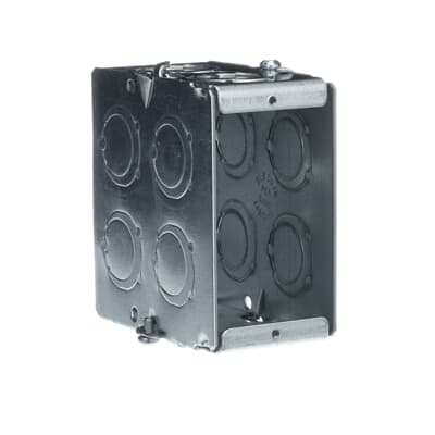 Steel City® Masonry Box, Gangable, 1 Outlet, 1 Gang, 8 Knockouts, 1/2 in, 3/4 in Knockout, Knockout Cable Entry, Threaded Mount, 22 cu-in, Steel, Pre-Galvanized, Silver, 3-3/4 in L x 1-15/16 in W x 3-1/2 in D