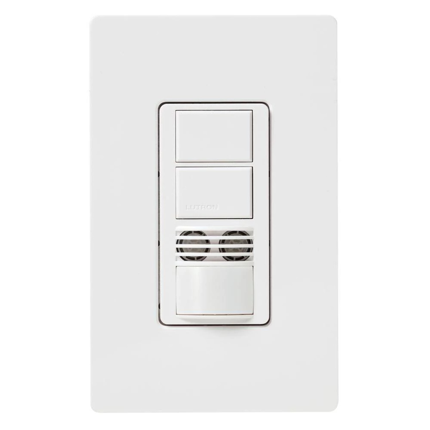 - Lutron Maestro Occupancy Sensing Switch, 1-Pole Dual-Circuit, Series: MS-A202, 120 to 277 VAC, 6 A, Passive Infrared/Ultrasonic Sensor, 400 sq-ft Minor, 900 sq-ft Major Coverage, 180 deg Viewing, 10 s Time Delay, ELV/Fluorescent/Halogen/Incandescent/LED