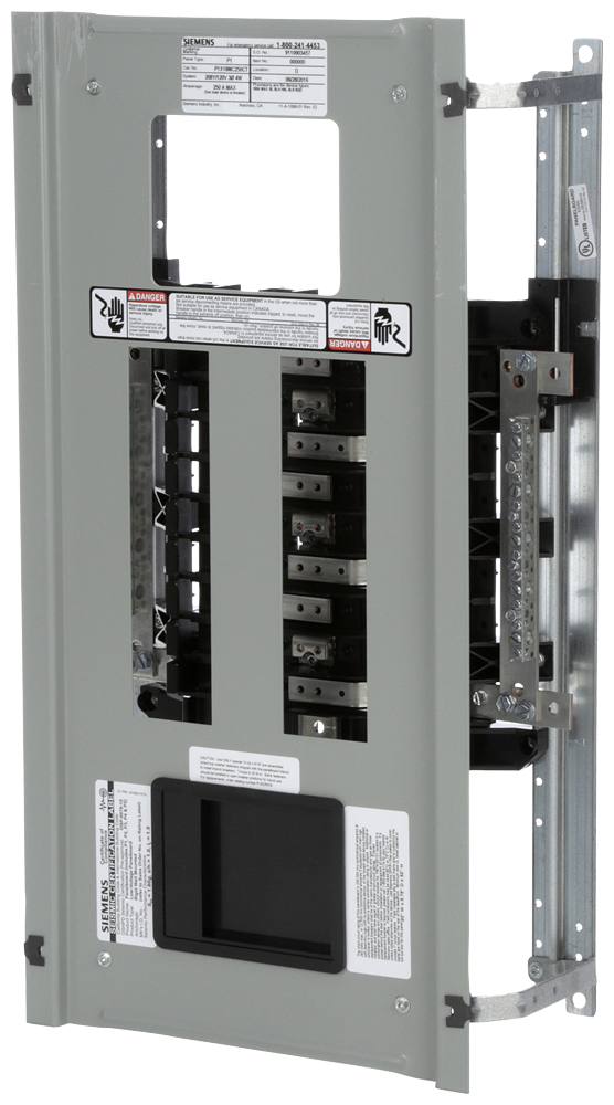 - Siemens Panelboard Interior, Type P1, 208/120 VAC, 250 A, BL/BLH/HBL Breaker, 3-Phase, 4-Wire Wiring Configuration, Copper Bus, NEMA 1/3R/12 Enclosure, Steel Housing Material, 32 in H x 20 in W x 5-3/4 in D Dimensions