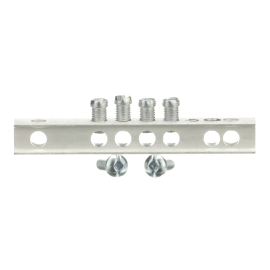 GE PowerMark Goldâ„¢ Equipment Ground Bar Kit, 4-Hole, Aluminum/Copper/Solid/Stranded Conductor, 4 Terminals, 14 to 4/12 to 10 AWG Conductor, For Use With: PowerMark Goldâ„¢ and PowerMark Plusâ„¢ Loadcenter