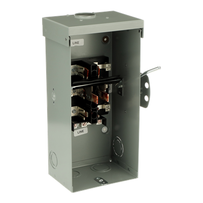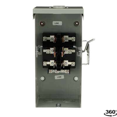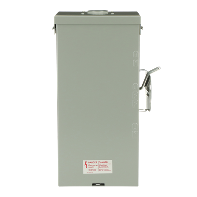 GE Spec-Setterâ„¢ Emergency Power Transfer Switch, 3-Phase Non-Fusible Double Throw, Series: TC Series, 120/240 VAC, 100 A, 7 hp Power, 2 Pole, NEMA 3R Enclosure, 60/75 deg C, Steel, Galvanized, 15.1 in H x 7.2 in W x 5.2 in D Dimensions