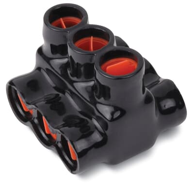 - Brand: Thomas & BettsColor: BlackCountry of Origin: USInsulation: PVCMaterial: AluminumNumber Of Ports: 3Special Features: PVC Insulation eliminates insulation failures and reduces outage costs. Removable port and screw plugs.Standard: UL File No. E9809|CSA CertifiedTemperature Rating: 90 CType: Multi-Tap/Port ConnectorVoltage Rating: 600 VWire Size: 250kcmil-10 Str