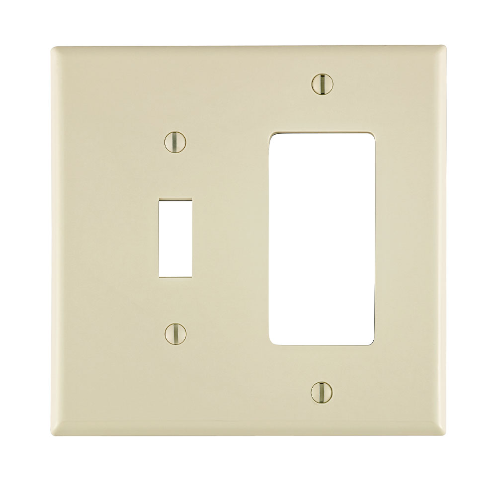 - Leviton Decora Combination Wallplate, Midway Size, 2 Gangs, 4-7/8 in H x 3-1/8 in W, 0.942 in H x 0.406 in W Toggle, Decorator/GFCI Cutout, Surface, 0.255 in Thickness, Thermoplastic, Light Almond, Smooth