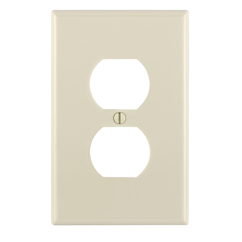 - Leviton Wallplate, Midway Size, 1 Gangs, 4-7/8 in H x 3-1/8 in W, 0.942 in H x 0.406 in W Duplex Receptacle Cutout, Surface, Molded Construction, 0.255 in Thickness, Thermoplastic, Light Almond, Smooth