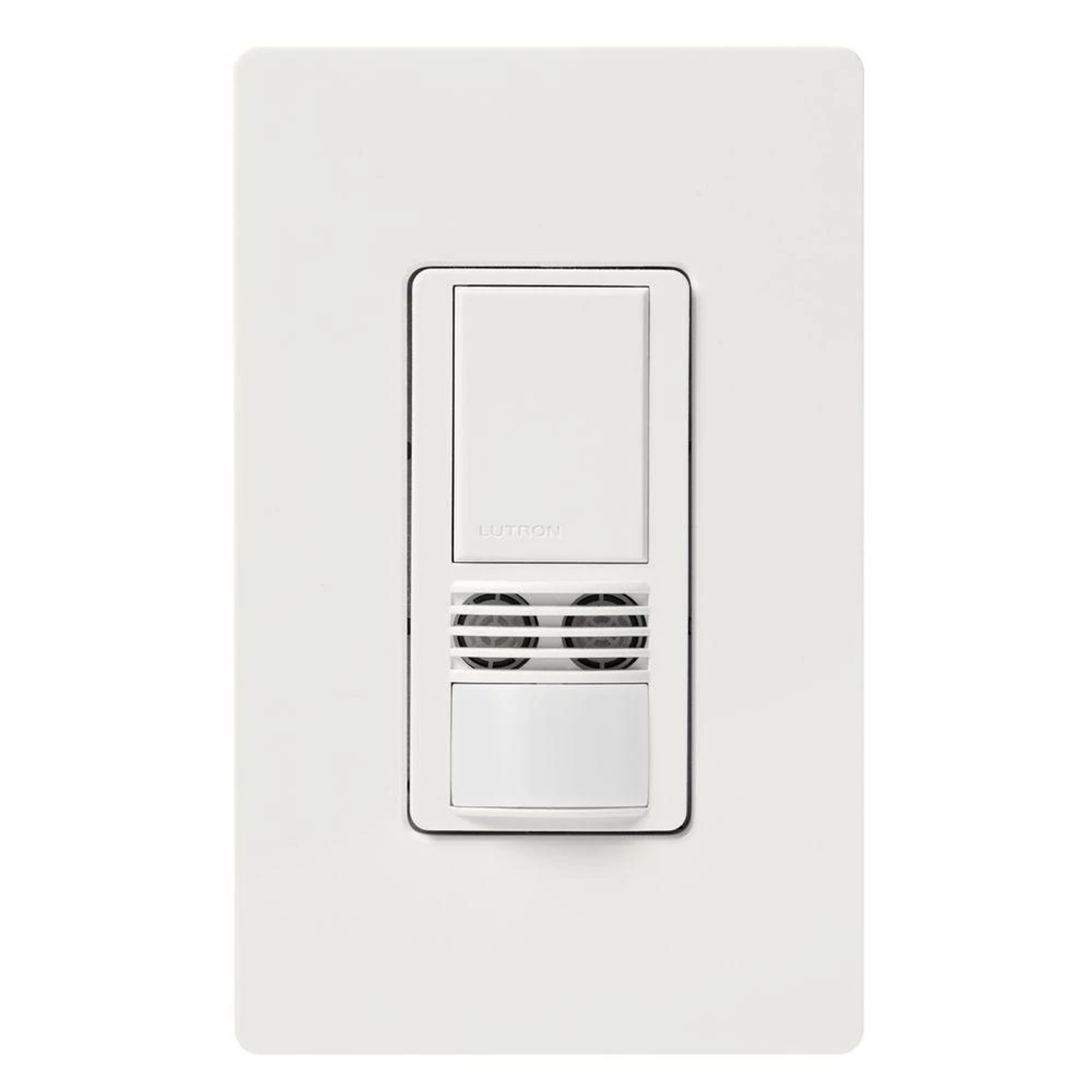 - Maestro® Dual Technology Sensor Switch, Single-Circuit, 120 to 277 VAC, 6 A Lighting/4.4 A Fan, Occupancy Sensor, 400 to 900 sq-ft Coverage, 180 deg Viewing, 1/5/15/30 min Time Delay, CFL/Fluorescent/Halogen/Incandescent/LED Lamp, 50/60 Hz Response, Wall Box Mounting, 32 to 104 deg F, White, 4-11/16 in H x 2-15/16 in W x 5/16 in D Dimensions