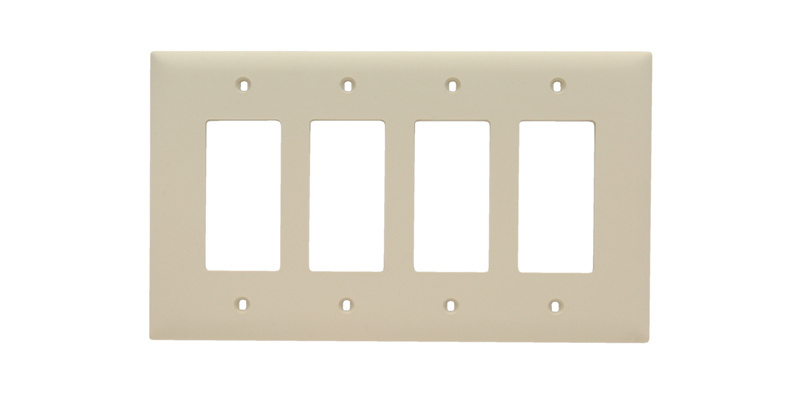- Brand: Pass & Seymour LegrandApplication: Residential/CommercialColor: IvoryConstruction: PlasticCountry of Origin: MXCutout: DecoratorGang: 4Insulation: BareMaterial: NylonMounting: WallOrientation: VerticalSize: 5""Special Features: Standard size plastic smooth wall plateStandard: CULUS, CSA, UL514Sub Brand: Pass & SeymourThickness: 0.07 inType: Wall Plate