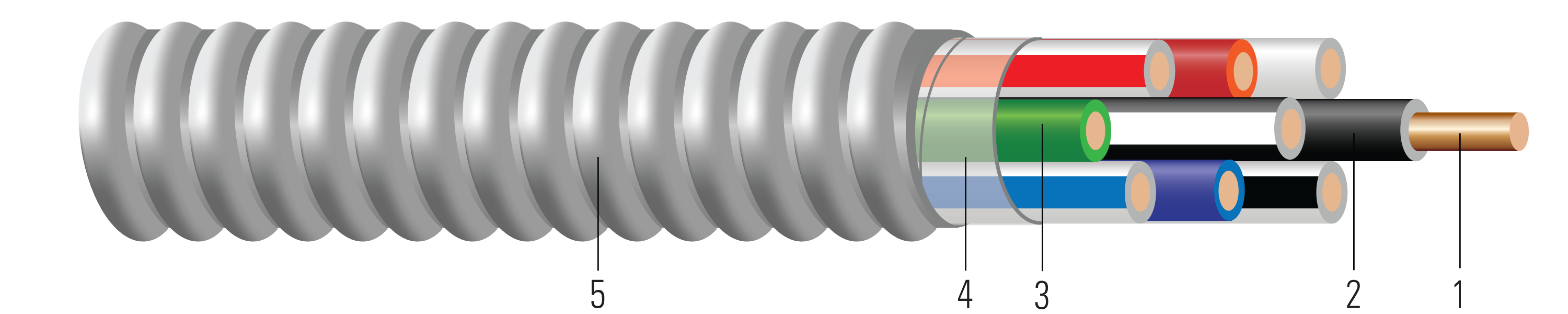 - Armorlite Armored Cable, Multi-Circle Type MC, 12 Conductors, Copper/THHN Conductor, 10 AWG Conductor