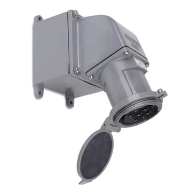 - Russellstoll® MaxGard® Flap Cap Receptacle, Explosionproof Female, 30/480 VAC, 200 A, 60 Hz, 4 Pole, 5 Wires, -40 to 130 deg C, Cast Aluminum, 8.25 in H x 6.55 in W x 8.2 in D